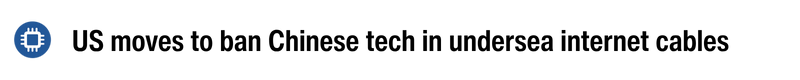 The United States is preparing to bar undersea communication cables linked to Chinese technology from connecting to its networks, citing national security concerns. The Federal Communications Commission announced it will adopt new rules to prevent the use of equipment from companies deemed threats, including Huawei, ZTE, China Telecom, and China Mobile.