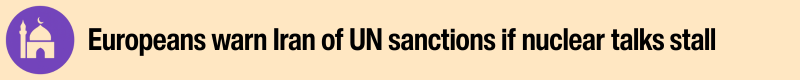 Under the 2015 nuclear agreement, UN sanctions can be reinstated if a signatory claims non-compliance. With the deal’s underlying UN resolution set to expire in October, European diplomats are seeking tangible steps from Iran before the end of August.