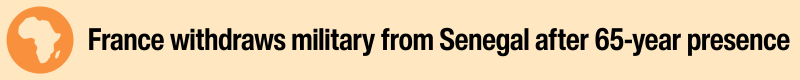 France formally handed over its last two military bases in Senegal on Thursday, ending a 65-year continuous military presence in the country. In a ceremony attended by top French and Senegalese officials, Camp Geille and the airfield at Dakar airport were returned to Senegal. Around 350 French soldiers stationed there will now depart, completing a withdrawal process that began in March.