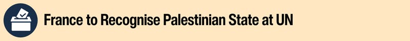 French President Emmanuel Macron has announced that France will formally recognise the State of Palestine at the United Nations General Assembly in September. In a public letter to Palestinian Authority President Mahmoud Abbas, Macron stated that the decision is intended to support a just and lasting peace in the Middle East. The move makes France the first major Western power to commit to Palestinian recognition amid a growing humanitarian crisis in Gaza and rising international pressure.