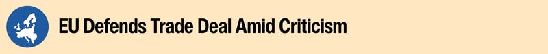The European Commission defended a last-minute trade agreement with the United States, calling it the best possible outcome under intense pressure, despite mounting criticism from within the bloc. The deal, struck Sunday at Donald Trump’s Scottish resort, imposes a 15% tariff on most EU exports — half the threatened rate — in exchange for greater European purchases of U.S. energy and zero tariffs on some American goods.