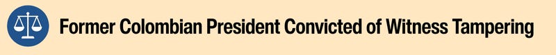 The case originated in 2012, when Uribe filed a libel suit against left-wing Senator Iván Cepeda, who had investigated Uribe’s alleged ties to paramilitaries. The Supreme Court instead opened a case against Uribe in 2018. Though not present in court, Uribe followed proceedings remotely and is expected to appeal.