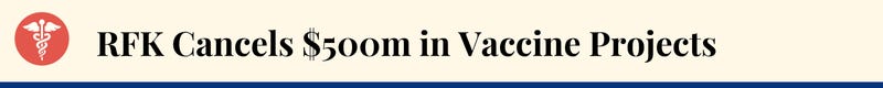 U.S. Health Secretary Robert F. Kennedy Jr. has canceled $500 million in funding for 22 government-backed vaccine projects using mRNA technology. The move halts development efforts for vaccines targeting respiratory viruses including COVID-19, influenza, and bird flu, many led by companies like Pfizer and Moderna. Kennedy, a longtime vaccine critic, said mRNA platforms “pose more risks than benefits” and fail to provide lasting protection.
