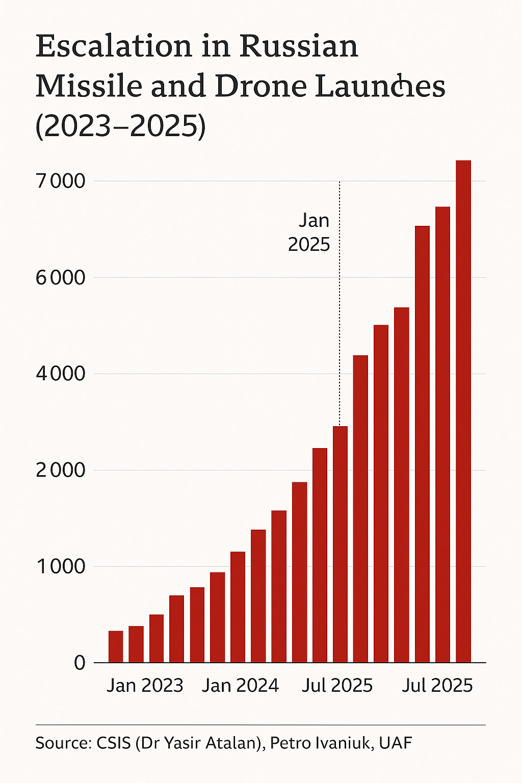 Russian aerial attacks on Ukraine have more than doubled since President Donald Trump returned to office in January, according to an analysis of Ukrainian military data. The surge comes despite Trump’s repeated calls for a ceasefire and follows two pauses in US weapons shipments to Ukraine earlier this year. From January 20 to July 19, Russia launched over 27,000 drones and missiles — more than twice the number recorded in the final six months of the previous administration.