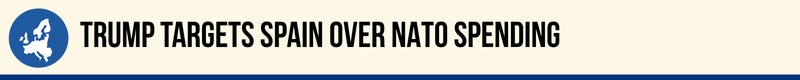 U.S. President Donald Trump suggested NATO should consider ousting Spain over its defence spending, saying “maybe you should throw them out of NATO, frankly,” during a meeting with Finland’s President Alexander Stubb. He has pressed allies to allocate 5% of GDP to defence — 3.5% for core military outlays and 1.5% for wider security — and Spain was the only country to decline to commit to the benchmark agreed at June’s summit.