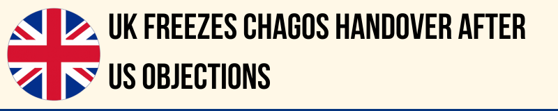 Britain has paused plans to hand the Chagos Islands to Mauritius after Donald Trump criticised the agreement and Washington failed to give the approval needed for it to proceed. The proposed deal would have transferred sovereignty while allowing Britain to keep the Diego Garcia military base on a 99-year lease, with an option to extend.