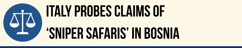 Italian prosecutors have opened an investigation into claims that Italian citizens paid to shoot civilians, including children, in Sarajevo during the Bosnian war. The allegations were filed by journalist Ezio Gavazzeni, who says wealthy foreign visitors paid large sums to fire on citizens from Serb-controlled positions. His file includes testimony from a former Bosnian intelligence officer who says he informed Italy’s SISMI agency in 1993 and was later told that the trips had been stopped. However, British soldiers who served in Sarajevo say they never saw evidence of such activity and describe the idea as an “urban myth”.
