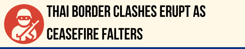 Fresh gunfire has been reported along the Thai-Cambodian border after a landmine blast injured Thai soldiers and prompted Bangkok to pause a recently signed, Trump-backed peace deal. Thai officials said the explosion involved a newly laid device and accused Cambodian troops of firing into Thai territory, saying their own forces returned only warning shots. However, Cambodian authorities alleged that Thai soldiers opened fire on civilians near Prey Chan, reporting several people wounded and one killed.
