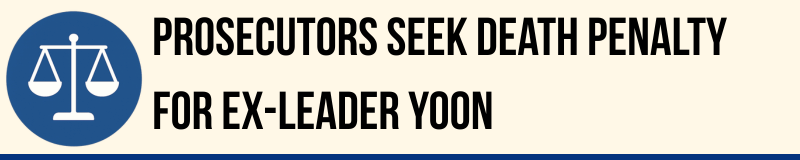 Prosecutors in South Korea on Tuesday sought the death penalty for former president Yoon Suk Yeol, accusing him of leading an insurrection through the unconstitutional declaration of martial law on Dec. 3, 2024. The court is due to deliver its ruling on Feb. 19.