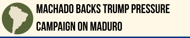 María Corina Machado, a Venezuelan opposition leader, said she “absolutely” supports President Donald Trump’s strategy toward Nicolás Maduro, speaking on CBS’s Face the Nation. She said she recently left Venezuela to collect her Nobel Peace Prize in Norway, her first public appearance in almost a year after living in hiding.