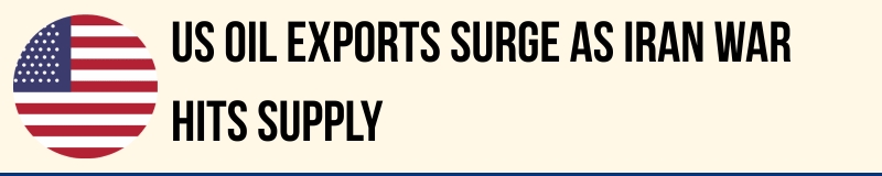 U.S. crude exports surged to 5.2 million barrels a day last week as buyers in Asia and Europe scrambled to replace Middle East supplies disrupted by the Iran war, pushing the United States close to becoming a net crude exporter for the first time since World War Two. Net imports narrowed to 66,000 barrels a day, the lowest level in weekly records going back to 2001.
