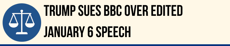 Donald Trump has filed a lawsuit against the BBC, seeking up to $10bn in damages over the editing of his January 6, 2021 speech in Washington before supporters stormed the US Capitol. He alleges the broadcaster “intentionally, maliciously, and deceptively” edited the remarks in a Panorama programme aired last year.