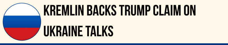 The Kremlin said it agreed with President Donald Trump that Ukraine is holding up a potential peace deal to end the war. Trump told Reuters that President Vladimir Putin was ready to make a deal, but that “Ukraine is less ready”, naming President Volodymyr Zelenskyy as the obstacle.