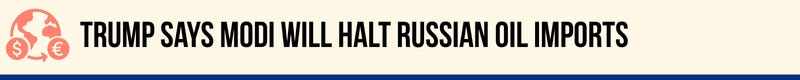 President Donald Trump says Indian Prime Minister Narendra Modi has agreed to end purchases of Russian oil as part of US efforts to cut Moscow’s wartime revenue. Trump told reporters Modi had “assured” him India would stop buying oil “within a short period”, calling it a “big stop”, though he admitted the shift would take time. The United States has imposed steep tariffs on Indian goods in retaliation for its continued energy trade with Russia.