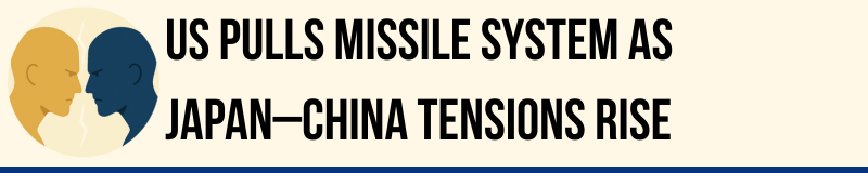 The United States has withdrawn its Typhon missile system from Japan after a prolonged delay, as tensions between Tokyo and Beijing intensify over Prime Minister Sanae Takaichi’s remarks on Taiwan. The system, capable of launching Tomahawk and SM-6 missiles with a range of up to 1,800km, had remained in place well beyond the scheduled end of joint exercises, prompting concerns that the deployment could become permanent. However, the defence ministry confirmed its removal, while avoiding explanation for the delay.
