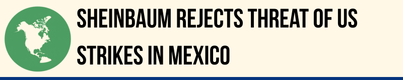 Her response followed Trump’s remarks that he would be willing to take forceful steps to stop drug flows and was “not happy with Mexico”, although US officials later indicated that any strike would require Mexico’s consent.