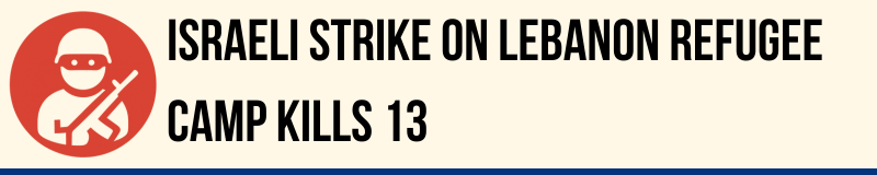 An Israeli strike on the Ain al-Hilweh Palestinian refugee camp in southern Lebanon killed 13 people on Tuesday, according to Lebanon’s health ministry. Several others were wounded, and ambulances continued transporting casualties to nearby hospitals.