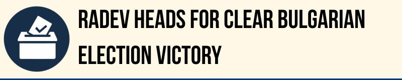 Rumen Radev’s Progressive Bulgaria party was headed for a decisive win in Bulgaria’s parliamentary election, with more than 60% of votes counted showing it on about 45% and well ahead of its main rivals. The result in the country’s eighth general election in five years could ease a period of instability marked by weak coalitions and repeated returns to the polls.