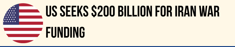 The Pentagon has requested $200 billion in additional funding for the Iran war, a figure that would require congressional approval and could significantly expand US defence spending. The request, which has not yet been formally submitted to Congress, comes on top of more than $800 billion already approved for the current fiscal year and additional defence funding passed last year.