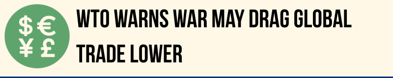 The World Trade Organization warned that the Middle East war could drag global trade lower this year as high energy prices and disrupted transport routes add pressure to an already slowing outlook. It forecast merchandise trade growth of 1.9% in 2026, down from 4.6% in 2025, but said that if crude oil and liquefied natural gas prices remain high, growth could fall further to 1.4%.