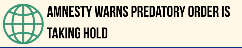A new annual human rights report warns that a predatory, anti-rights order is taking hold as powerful states, corporations and movements assault multilateralism, international law and civil society. Amnesty International Secretary General Agnès Callamard said the moment marks a direct assault on the foundations of human rights and the international rules-based order for control, impunity and profit.