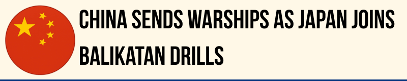 China said it had dispatched a naval destroyer group to the western Pacific to test operational capabilities on the same day Japan joined the annual US-Philippine Balikatan drills with combat troops for the first time. Beijing described the deployment as routine training, but the route taken by the ships passed through the Yokoate Waterway, closer to the Japanese mainland than the usual passage.