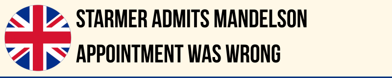 Keir Starmer said he made the wrong judgment in appointing Peter Mandelson as Britain’s ambassador to Washington, conceding in parliament that he should not have made the appointment. He said he would not have gone ahead had he known Mandelson had failed security vetting, and apologised again to the victims of Jeffrey Epstein.