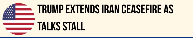 President Donald Trump extended the US ceasefire with Iran one day before its expiry after mediation requests from Pakistan’s army chief Asim Munir and Prime Minister Shehbaz Sharif, while saying Washington would wait for a “unified proposal” from Tehran. Planned negotiations stalled as Vice-President JD Vance’s trip to Islamabad was put on hold and both sides accused each other of violating the truce.