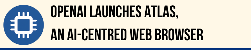 OpenAI has launched Atlas, a web browser built around ChatGPT and now available on Apple laptops, with versions coming to Windows, iOS and Android. The browser introduces a sidebar for users to summarise page content, compare products and analyse on-site data, and can edit highlighted text. A preview “Agent Mode” for some premium accounts can complete tasks from start to finish, such as researching and shopping.