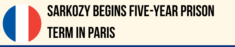 Former French president Nicolas Sarkozy began a five-year prison term on Tuesday after his conviction for conspiring to seek Libyan funding for his 2007 campaign. Escorted by a police convoy to La Santé prison, he became the first former head of state jailed in France in more than half a century. He has appealed the verdict, but a court provision means he is not free pending appeal. Prison authorities said he will be held in solitary confinement for safety.