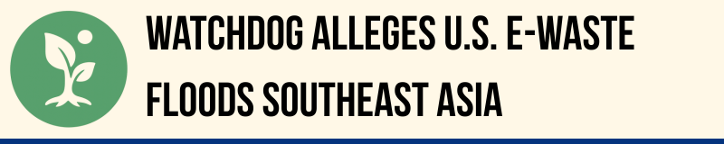 An environmental watchdog, Basel Action Network, says U.S. e-waste exports have surged into developing Southeast Asian countries, describing a “hidden tsunami” uncovered by a two-year investigation into at least 10 American firms.