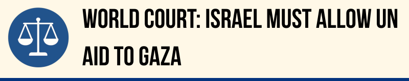 The International Court of Justice issued an advisory opinion saying Israel must ensure Gaza’s basic needs are met and support United Nations relief efforts, including UNRWA. The court said an occupying power must provide essentials such as food, water, shelter, fuel and medical services, and may not use starvation as a method of warfare. Advisory opinions are not binding, but carry legal and political weight.