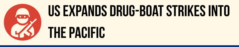 The United States has widened its campaign of attacks on suspected drug-smuggling boats, striking vessels in the Pacific Ocean for the first time. Defence Secretary Pete Hegseth confirmed two separate strikes this week that killed five people, saying both targeted “narco-terrorists” operating in international waters.