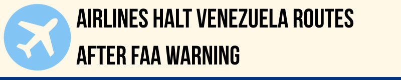International airlines suspended flights to Venezuela after the US Federal Aviation Administration warned of a worsening security environment and increased military activity around the country. Carriers including Avianca, TAP, LATAM, Gol, Caribbean Airlines and Iberia paused routes, with some cancellations beginning over the weekend. The FAA cited interference with navigation systems and Venezuelan military exercises, urging operators to exercise caution at all altitudes.