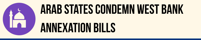 A joint statement by 15 countries, the Arab League and the OIC denounced the bills as violations of international law, citing UN Security Council Resolution 2334 and an ICJ advisory opinion reaffirming obligations in the occupied Palestinian territories.