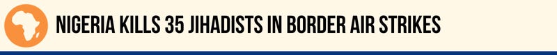 Nigeria’s military said it killed more than 35 jihadists in a series of air strikes near the border with Cameroon. The strikes targeted four assembly areas after intelligence warned of an imminent attack on ground troops. The military said the operation stabilized the situation on the ground and was intended to deny militants freedom of movement.