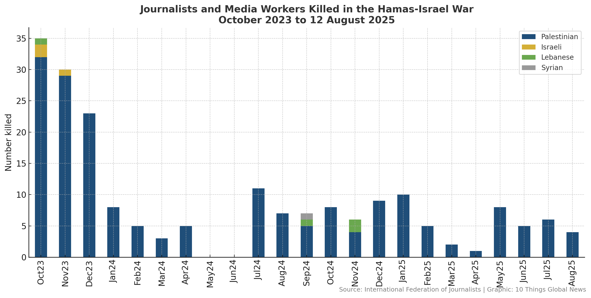 The journalists killed included freelancers and contractors working with Reuters, the Associated Press, Al Jazeera, and Middle East Eye. Among them was Mariam Dagga, who had recently reported on children suffering from starvation. Emergency responders and hospital staff were also among the dead.