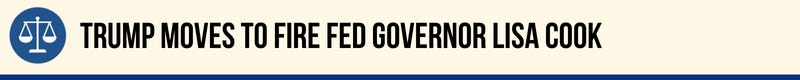 President Donald Trump said he was firing Federal Reserve Governor Lisa Cook “effective immediately,” escalating his confrontation with the central bank. In a letter posted online, Trump claimed Cook made false statements on mortgage applications, citing “sufficient cause” to remove her from office.