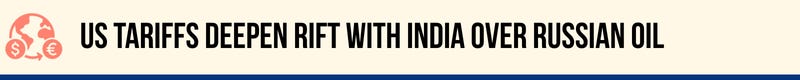 The United States has imposed sweeping 50% tariffs on Indian goods, escalating tensions over New Delhi’s purchases of Russian oil and weapons. The penalties, among the highest globally, include a 25% surcharge tied directly to transactions with Moscow. President Trump’s trade adviser Peter Navarro fueled the clash further, calling the Ukraine conflict “Modi’s war” and accusing India of siding with “authoritarians.”