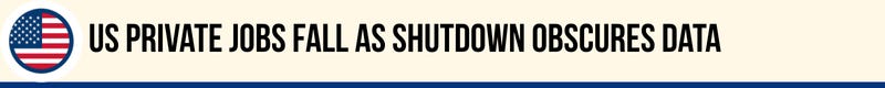 US private-sector employment fell by 32,000 in September, according to ADP, adding to signs of a weakening labour market. With the federal government shutdown closing the Bureau of Labor Statistics, the official payrolls report is unlikely to be published this week, leaving ADP as the main snapshot. ADP also revised August from a 54,000 gain to a loss of 3,000, indicating momentum has cooled further.