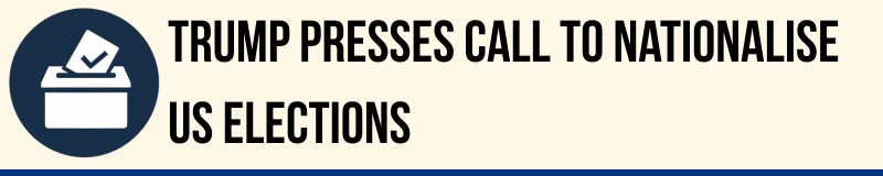 President Donald Trump renewed calls for Republicans to “nationalise” elections, arguing the federal government should intervene in states he claims cannot run votes honestly. Speaking in the Oval Office on Tuesday, Trump said federal agents should be involved in counting ballots and suggested control be taken from certain states, without presenting evidence of wrongdoing.