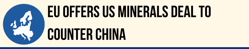The European Union is preparing to pitch the United States on a critical minerals partnership aimed at reducing reliance on China, as Washington pushes to strike global agreements this week. The EU is ready to sign a memorandum of understanding with the US to develop a “Strategic Partnership Roadmap” within three months, according to people familiar with the matter.