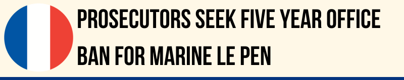 French prosecutors have asked an appeals court to impose a five year ban on Marine Le Pen from holding elected office, a move that could block the far right leader from running in the 2027 presidential election. The request was made on Tuesday during a high profile appeal trial in Paris.