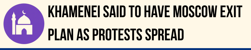Iran’s supreme leader Ayatollah Ali Khamenei has prepared an escape plan to flee Tehran for Moscow if unrest intensifies and security forces fail to contain it, according to an intelligence report cited by The Times. The plan would involve Khamenei, 86, and up to 20 close aides and family members.