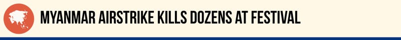 At least 40 people, including children, were killed when Myanmar’s military carried out airstrikes on a Buddhist festival and anti-junta protest in Chaung-U township on 6 October. Witnesses said bombs were dropped from motorised paragliders onto a crowd of hundreds gathered for the Thadingyut full moon festival, leaving bodies and debris scattered across the site. Around 80 others were wounded, and funerals were held the following day.