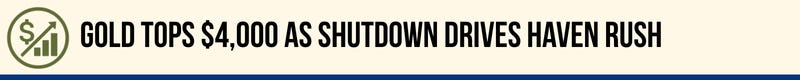Gold Tops $4,000 as Shutdown Drives Haven Rush