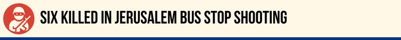 Six Israelis were killed and at least a dozen others wounded when two Palestinian gunmen opened fire at a crowded bus stop in northern Jerusalem during Monday morning’s rush hour. The attackers arrived by vehicle at Ramot Junction and fired on commuters before being shot dead by an off-duty soldier and a civilian. Victims included five men aged 25 to 79 and a 60-year-old woman. Several wounded remain in serious condition.