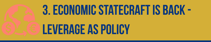 What stood out was not novelty, but normalisation. Economic leverage is now a primary policy channel, used across domains where military or diplomatic tools face limits.