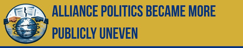 The second pattern was that alliance politics became more visibly strained. Rather than drawing a clear common Western line, the conflict exposed diverging appetites for risk and responsibility. Spain blocked US war flights and extended its refusal to support the operation through jointly used bases, turning strategic disagreement into an operational constraint.